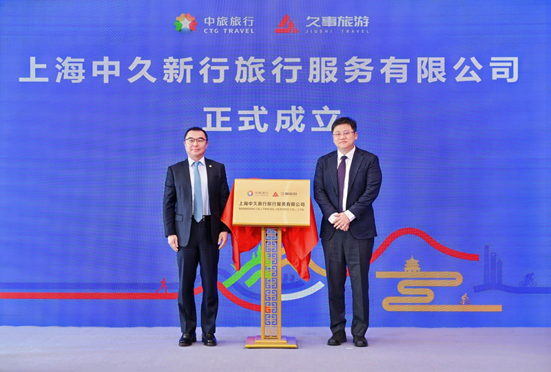 4月25日,中旅旅行與久事旅游合資組建的上海中久新行旅行服務(wù)有限公司(以下簡稱“中久新行”)在黃浦江畔的世界會客廳舉行揭牌儀式。集團黨委委員、副總經(jīng)理簡易與久事集團黨委副書記葉章毅共同為新公司揭牌,上海市文化和旅游局、中旅旅行、久事旅游相關(guān)負責(zé)人及合作伙伴、旅行商代表共同出席了此次活動。