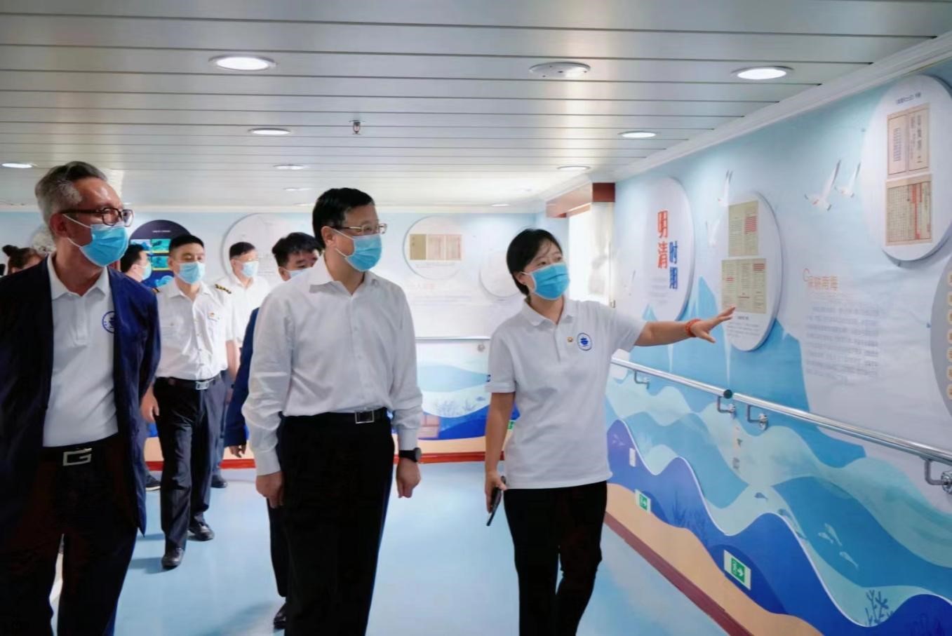 10月29日中午,陳寅董事長到三亞鳳凰島碼頭調(diào)研“南海之夢”號郵輪,登輪查看了郵輪場所設(shè)施,詳細了解“南海之夢郵輪”復工復產(chǎn)情況和疫情防控措施落實情況,現(xiàn)場慰問了全體船員和陸岸員工。陳寅董事長指出,南海郵輪管理團隊和全體員工要積極踐行“誠信經(jīng)營、優(yōu)質(zhì)服務(wù)”的經(jīng)營理念,要齊心協(xié)力做好郵輪復航準備工作,把三沙旅游航線打造成為旅游行業(yè)稀缺精致的產(chǎn)品,進一步把集團品牌推向更廣闊的市場。