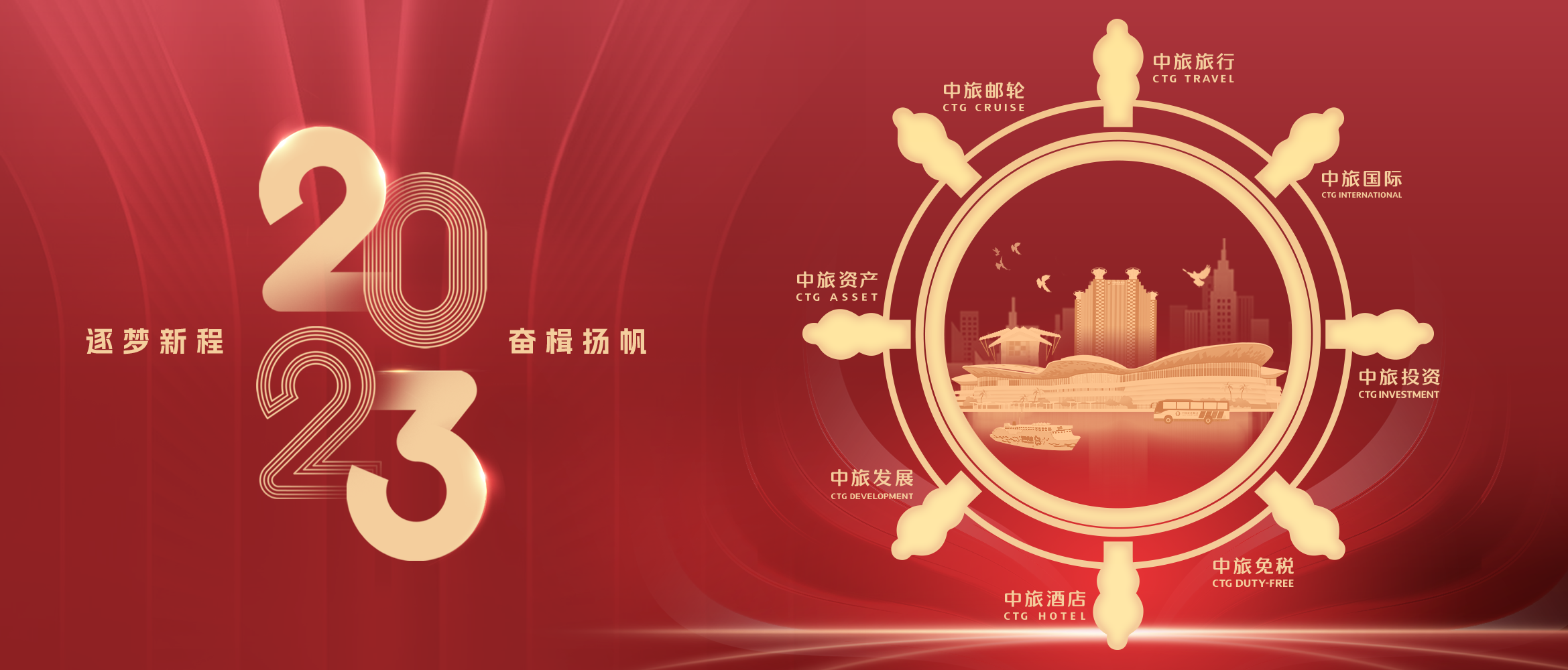 歲月如梭,華章日新。在這辭舊迎新的美好時刻,我們謹代表中國旅游集團向長期以來關(guān)心和支持集團事業(yè)發(fā)展的廣大消費者、客戶、合作伙伴以及社會各界朋友,向集團全體干部員工、離退休老同事及員工家屬致以誠摯的謝意和新年的祝福!