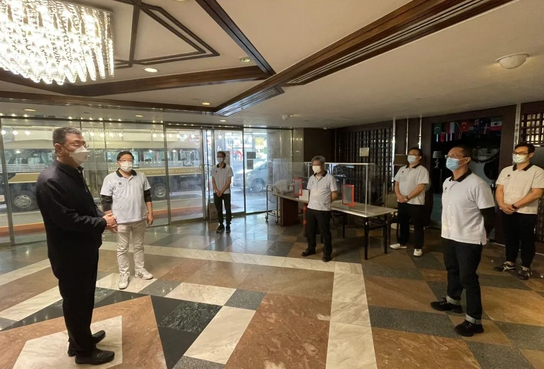 為確保各項支持抗疫服務(wù)保障工作有序推進(jìn),3月6日下午,集團(tuán)石善博副總經(jīng)理一行來到尖沙咀君怡酒店,看望慰問集團(tuán)旗下香港中旅社在該酒店為內(nèi)地援港專家團(tuán)隊提供后勤保障服務(wù)的工作專班并檢查疫情防控工作。