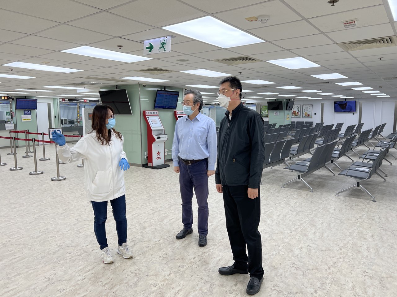 3月22日下午,集團(tuán)石善博副總經(jīng)理先后到紅磡二倉(cāng)和集團(tuán)證件業(yè)務(wù)部九龍東證件服務(wù)中心,向堅(jiān)守在一線服務(wù)的員工轉(zhuǎn)達(dá)了陳寅董事長(zhǎng)等集團(tuán)領(lǐng)導(dǎo)的關(guān)心和問(wèn)候,并現(xiàn)場(chǎng)調(diào)研疫情防控工作情況和對(duì)內(nèi)地援港抗疫團(tuán)隊(duì)服務(wù)保障工作情況。集團(tuán)董事會(huì)秘書周鵬陪同檢查。
