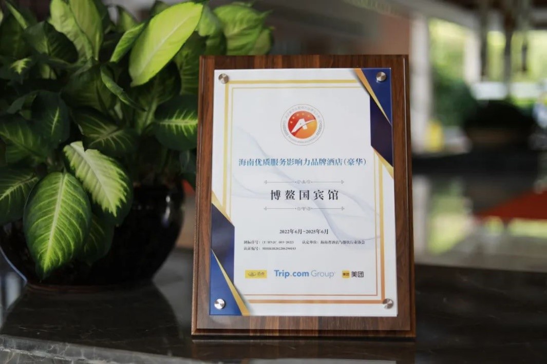 博鰲國賓館獲海南優(yōu)質(zhì)服務(wù)影響力品牌酒店(豪華)榮譽